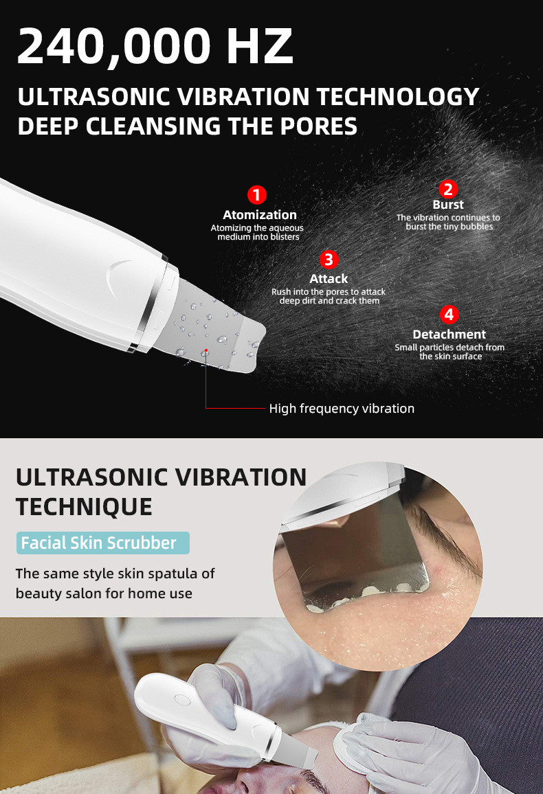 Transform your skincare routine with our state-of-the-art Ultrasonic Skin Scraper. Designed to provide a deep and thorough cleanse, this innovative device utilizes high-frequency vibrations to effectively remove blackheads, dirt, and residual makeup from your skin, leaving you with a radiant complexion.