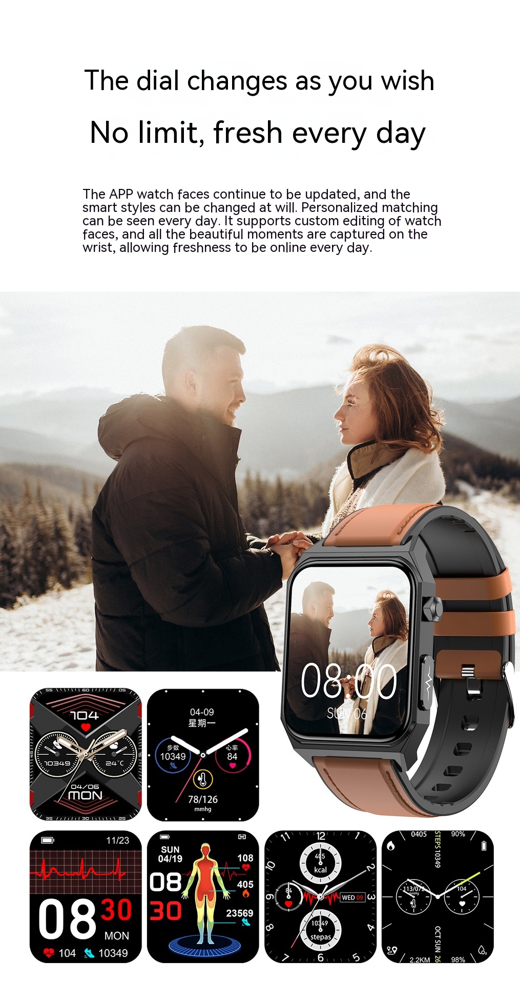 Featuring a stunning 1.91-inch high-definition touch screen, this watch is not only aesthetically pleasing but also packed with essential health functions. Monitor your heart rate, blood pressure, blood oxygen, and even body temperature with ease. Equipped with a high-frequency ECG chip (TYHX3220), you can trust that you're receiving accurate readings.