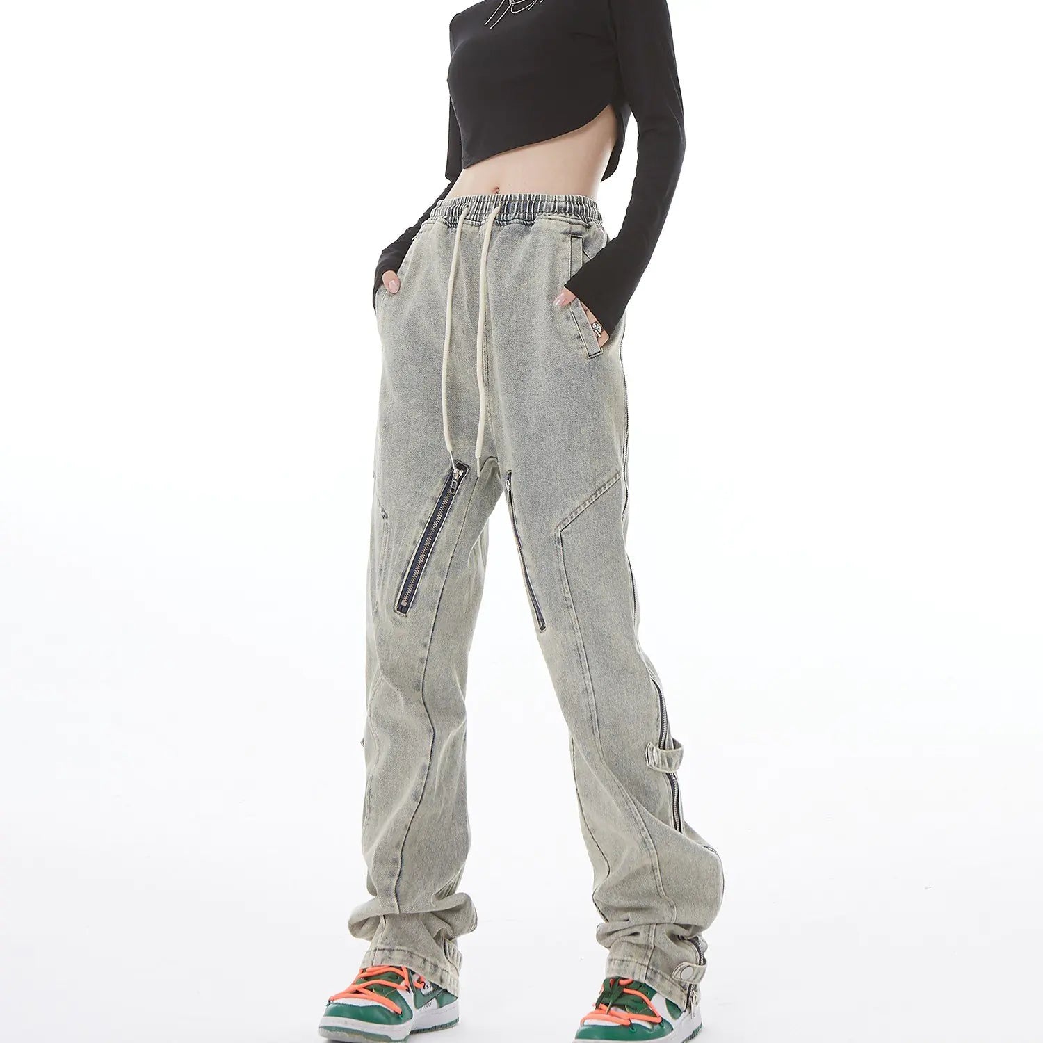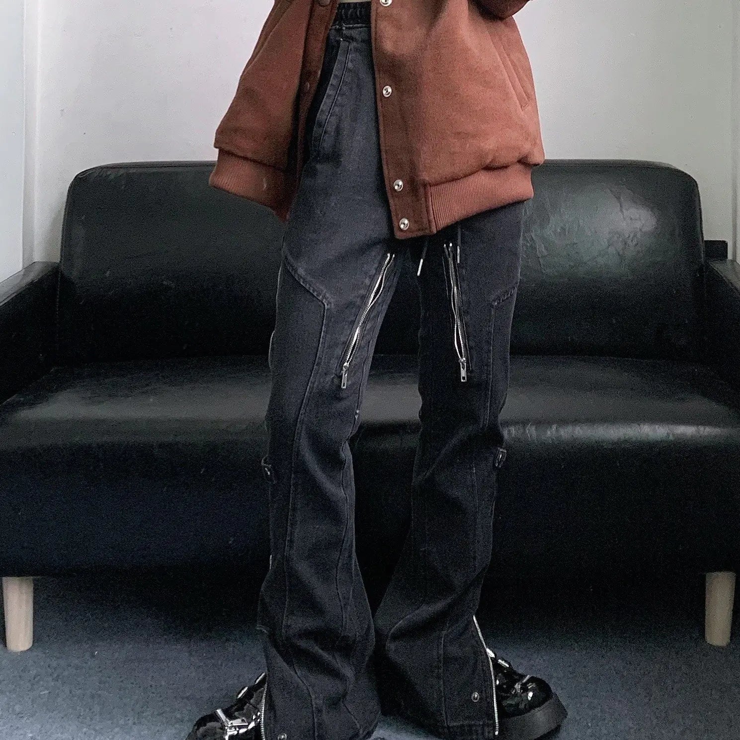 Discover the perfect blend of comfort and trend with these unique jeans. Designed with a side open zipper and micro-flared bottom, these jeans offer a modern twist on classic denim. Available in striking black and blue yellow, they are sure to make a statement in any wardrobe.