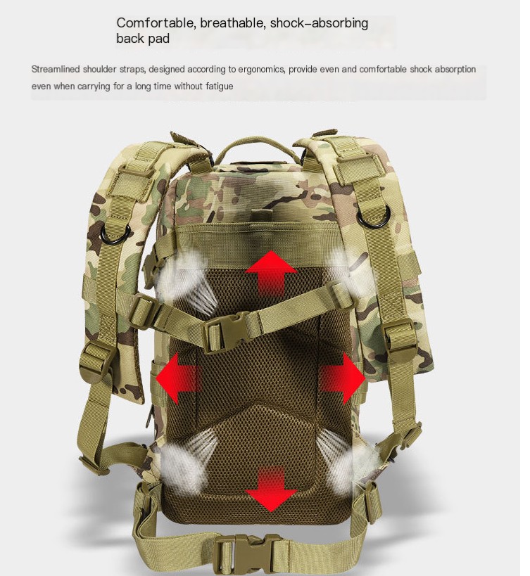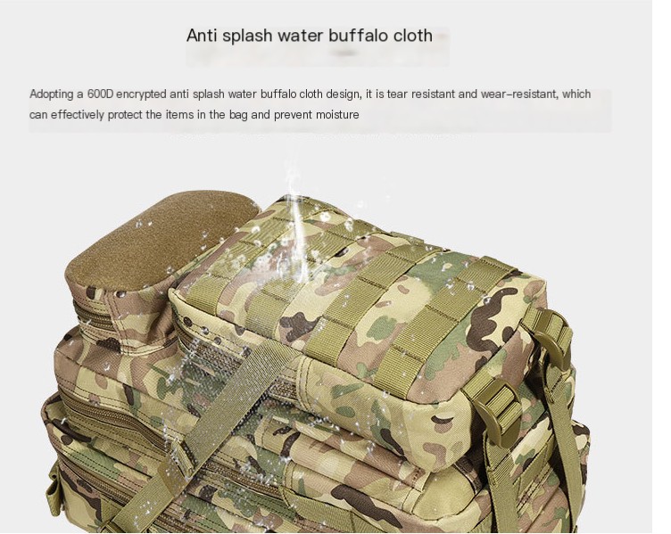 This Tactical Backpack is not just about looks; it's built to withstand the elements with features such as wear-resistant and water splash resistant materials, making it an ideal companion for any outdoor activity.